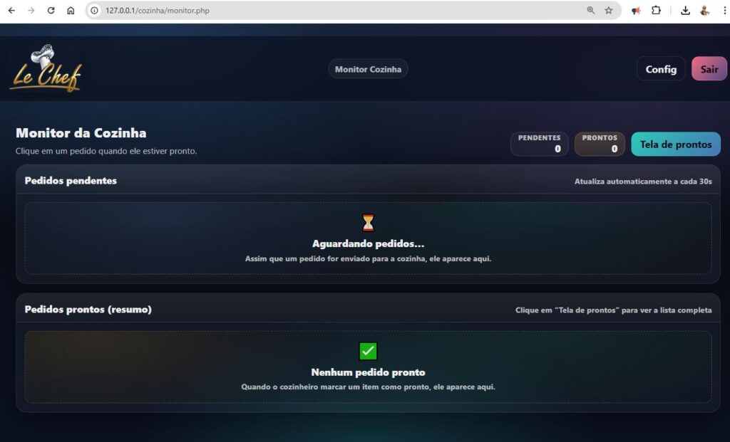 Para usar esse aplicativo precisa ter a licença do Lechef rede, que com o monitor cozinha funciona, pode ser usado em um tablet utilizando o navegador de internet usando como endereço o IP do servidorex: 192.168.0.1/cozinha